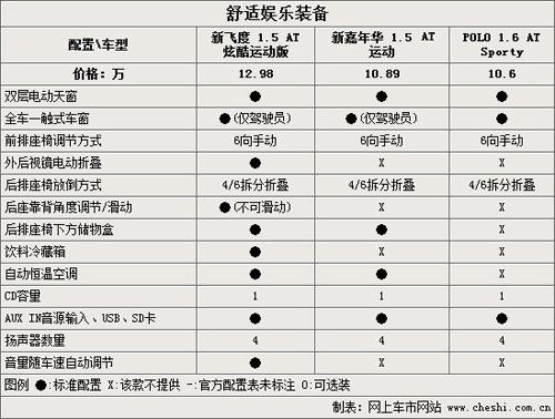四款車型的駕駛席座椅都可以進行高低/前后/角度的調節,更加方便家庭中的每一位駕駛者找到合適的坐姿。3款車型都標配了電動天窗但是新嘉年華的天窗打開后面積較小而且是外掀式的設計,也許這一點就不能滿足一些消費者的需求了。在娛樂性方面,四款車型中比較獨特的設計是新飛度的隨速音量調節。
