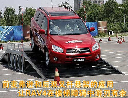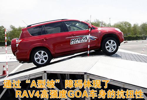 RAV4城市休閑SUV輕松通過“A型坡”障礙,體現了RAV4高強度GOA車身的抗扭特性。RAV4城市休閑SUV不僅擁有靈巧的車身和精準的操控,而且大型SUV才具備的越野通過性依然可以在RAV4身上找到。RAV4城市休閑,另類征服。
