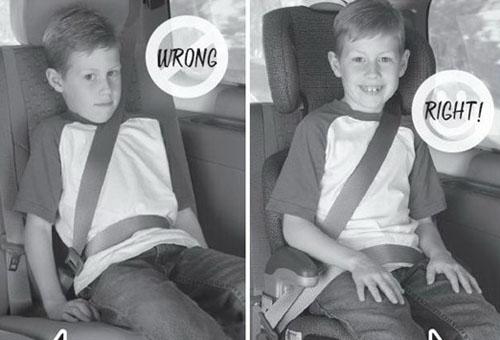 對于那些身高在1.5米以上的兒童來說,最好使用腰部和肩部安全帶,肩部安全帶應剛好穿過胸前系在肩部;腰部安全帶應帶系在稍低一些的位置,貼緊孩子的大腿,不應高過肚子;記住永遠不要把肩部安全帶系在胳膊下面或者孩子后背。