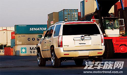 從貨場駛出,一路上被大貨車壓壞的路面坑坑洼洼,這時MRC主動電磁感應(yīng)懸架自動調(diào)節(jié)阻尼,高大的車身在顛簸路面上快速前進,而乘客感到的僅僅是輕微晃動。駛離港區(qū),眼前出現(xiàn)筆直的高架公路,輕點油門,車速很快提高到100公里/小時。這時從具有AudioPilot噪音補償技術(shù)的Bose音響中流出的音樂依然保持純凈,并未因?qū)挻蟮能嚿砗?85寬胎所產(chǎn)生的些許噪音而受到影響。此外,可能是靈敏的懸架已經(jīng)自動調(diào)高阻尼,美國車特有的忽忽悠悠的如坐船般的感覺卻并沒有出現(xiàn)在我們的凱雷德身上。