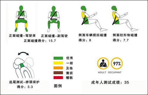 上圖描述的是車輛對于路人的保護情況和安全輔助設備配置情況。路人安全在歐洲已經普遍重視,很多檢測項目已經有了很清晰的標準。圖中看出,高爾夫6代翼子板部分對行人傷害是比較重的。在安全配置方面,高爾夫6代標配了ESC,也就是我們國內常說的ESP,不知道國產版本會不會“偷工減料”。駕駛席和副駕駛的安全帶提醒裝置都為高爾夫6代的最終成績做了加分。