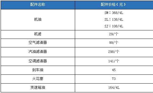 雅閣的機油價格比較特殊,分為三種,分別為SJ級,SL級和SM級別,價格也從108元/4L升級到368/4L。空氣濾清器每2萬公里更換一次,汽油濾清器每4萬公里更換一次。另外4萬公里時還需要進行一次比較大的保養,更換全車油,清洗節氣門等等,費用為2200元。