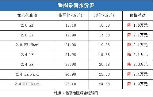 出色的銷售成績當然需要依靠吸引人的市場價格,近期北京地區的價格有較大幅度的下降,全系車型優惠在1.6-2.4萬元區間,雅閣最低配車型的售價為16.58萬元。