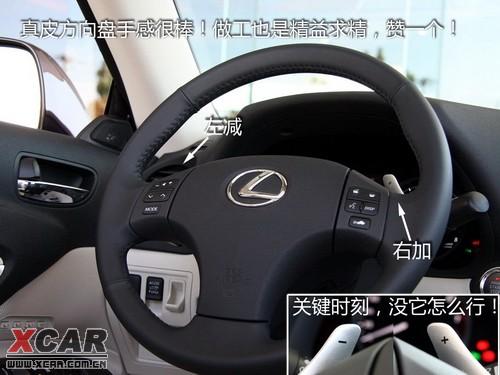 除了色調(diào)外,IS300C的內(nèi)部設計與普通車型基本上一致,不過我倒是覺得儀表盤IS300C完全可以再炫一些,“風”要由內(nèi)而外的“拉”。IS系列的方向盤手感很棒,真皮材質(zhì)很細膩,粗細也非常趁手,普通車型都具備的換擋撥片當然也不會缺席。