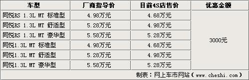 據江淮4S店的銷售人員透露,目前江淮同悅1.3L手動標準型、舒適型、豪華型均有現車銷售,顏色方面以紅色和銀色比較搶手。據筆者了解,由于江淮汽車目前對同悅系列車型的市場價格有限制,這款車型在江淮4S店內的優惠幅度并不是很高。另外銷售人員還表示,1.5L手動由于沒有上市所以不能銷售。