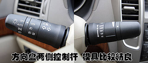 方向盤左右控制桿采用塑料材質,模具非常精細,做工質量也非常好,使用時手感以及操作力度行程適中。