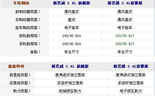 參與對比的兩款新君越的輪胎尺寸比新君威要小一號,當然在2.4豪華型以上的新君越輪胎也是245//45 R18的,只是這一次是新君越低配跟新君威高配的對比,因此會存在一定的差距。不過,前后通風盤的設計讓新君越在制動系統上比新君威要高了一層。另外,新君越的轉向系統為電子液壓助力的,比新君威的機械液壓式在結構上要略先進些,同時也能節省一點點油耗(僅指在轉向助力方面所消耗的燃油)。