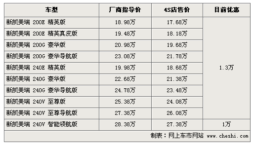 據4S店銷售人員介紹:目前除了新上市的智能領航版凱美瑞優惠1萬元現金外,其它款凱美瑞全部優惠1.3萬元。現車充足,顏色齊全,在店內購車不附贈裝飾。如在近期購買車輛,優惠幅度還能有小幅增加。