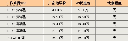 品牌看點:對于一款馬自達和德國大眾技術融合的車型,B50與B70的開發模式一樣,首先在產品的核心技術上先安下“放心丸”,而且9.88萬元-12.58萬元定價可以說是覆蓋了市場上主流1.6L中級車的價格范圍,奠定了產品的競爭力基礎。可以說B50的上市解決了奔騰品牌僅一款B70車型獨打的局面,目前,奔騰B70月銷5000輛成績幾乎于老馬自達6不分上下。B50的上市后對B70在1.6L市場的缺失將帶來彌補作用。