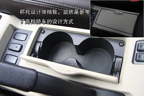 杯托的制造工藝借鑒了高檔轎車杯托的設(shè)計(jì),一個(gè)可以折疊的杯托蓋改善了視覺(jué)效果。