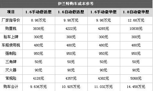 一、購車成本,伊蘭特1.6的排量性價比較好,1.8排量車型不僅購置稅沒有優惠,而且裸車的費用高出1.6很多。其中1.6手動舒適型和1.6手動豪華型更適合家庭用戶選購。