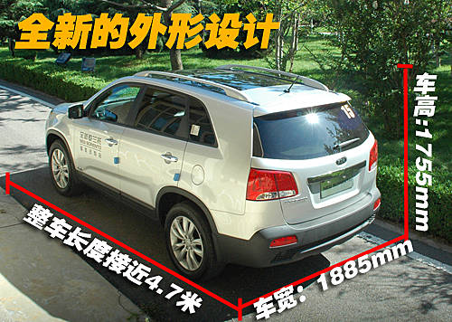 全新索蘭托車身側面線條與也沒有了老款車型的影子,整體給人一種全新的感覺。車側沒有配備在SUV車型中常見的門外踏板,身材嬌小的女士上下車會覺得有些吃力,相信日后會有原廠的精品配件可供選擇。