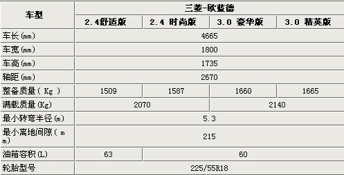 全新一代三菱歐藍德的身尺寸達到了4665mm;1800mm;1735mm,保證了其內(nèi)部橫向空間及頭部空間的寬敞。2.67米的軸距為新歐藍德提供了舒適的內(nèi)部空間。新歐藍德的最小離地間隙為215mm,足以適應一般道路的路況,同時5.3m的最小轉彎半徑,也可以適應中國地區(qū)道路窄小的特點。60升的油箱,可以保障人們?nèi)粘3鲇蔚男枰?/p>