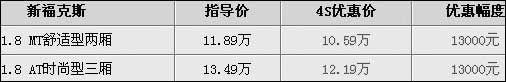 兩廂福克斯最高優惠1.3萬元
