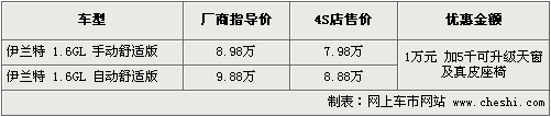 北京現(xiàn)代伊蘭特 優(yōu)惠幅度:現(xiàn)金優(yōu)惠1萬元