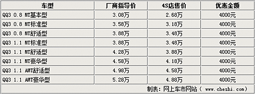 奇瑞QQ3 優(yōu)惠幅度:現(xiàn)金優(yōu)惠4000元
