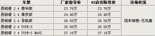 據東風本田4S店銷售人員介紹,目前思鉑睿全系車型均以到店,但車型顏色比較單一。思鉑睿全系提供了塔夫綢白、彩晶黑、鈦金銀、炫影藍、炫動紫五種外觀顏色,以及靜雅黃、靜逸黑兩種內飾顏色供消費者選擇。TYPE-S車型還推出炫速紅專用色。售后保養方面制定整車三年十萬公里的保修政策,提供3個月/5000公里的易損件保修服務。