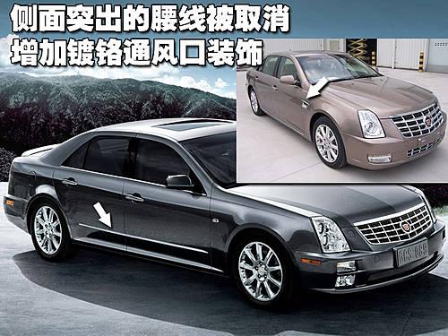 外形細節方面,車頭部分新款凱迪拉克SLS的前格柵為更大的鍍鉻格柵、同時前保險杠下方也使用了金屬鍍鉻設計。此外前保險杠左右兩側的霧燈造型也有明顯變化,從圖中來看似乎還增加了LED的日間行車燈設計。而老款車型保險杠兩側明顯帶有美式風格的黃色反光板,在新款車型中也不見了。