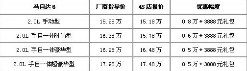 作為“彎道王”馬自達6受到了許多務實派車主的喜愛,現在給有8000元讓利還送3888元禮包,加上現車供應,相信會讓更多車主體會到馬自達6帶來的駕駛樂趣。