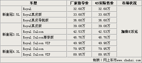 據一汽豐田4S店銷售人員表示,第一批車輛要到1月份才能到店,而且要加價2萬元。大批量車源要到3月份才會到店,目前消費者可以提前預定,訂金1萬元。銷售人員還表示,如果消費者不急著購車,可以等到3月份在其購買。
