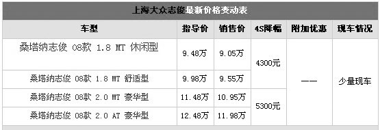 日前車天下汽車網記者獲悉,桑塔納志俊全系車型最高有5300元的讓利,同時當天定車還可獲2500元裝潢禮包、油卡以及GPS抽獎等禮品。感興趣的朋友可以到當地經銷商處了解實際情況。