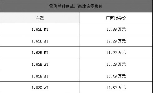 2009年4月9日,上海通用汽車公布了倍受關注的新生代性能中級車雪佛蘭科魯茲的售價。雪佛蘭科魯茲此次共有1.6L和1.8L兩款排量六種不同配置的車型,配備五速手動和S6六速手自一體變速箱,并有六種車身顏色可供選擇,最終價格區間定為10.89-14.89萬元。即日起全國各地的雪佛蘭經銷商店開始接受預訂。