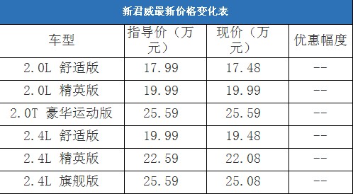 今日,編輯從北京地區(qū)通用別克4S經(jīng)銷商處了解到,新君威的現(xiàn)車十分緊張,只有少量2.0T車型,消費(fèi)者現(xiàn)在預(yù)訂該車的話勉強(qiáng)能夠保證在春節(jié)前提車。據(jù)經(jīng)銷商透露,因?yàn)樾戮恢睙徜N,車源比較緊張,所以消費(fèi)者購車沒有任何優(yōu)惠。以下是新君威最新價(jià)格變化表: