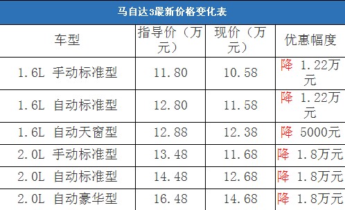近日,編輯從北京地區(qū)綜合經(jīng)銷商處了解到,目前馬自達(dá)3的現(xiàn)車不是很充足,有少量銀色、紅色和黑色現(xiàn)車;目前購(gòu)車最高可以優(yōu)惠1.8萬(wàn)元,降價(jià)幅度與去年末相比有了小幅回縮。以下是馬自達(dá)3最新價(jià)格變化表: