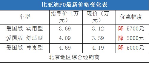近日,編輯從北京地區比亞迪綜合經銷商處了解到,近期比亞迪F0的現車比較充足,有紅色和銀色現車,基本上可以滿足消費者在春節前的購車需求。目前購車最高可以優惠5700元現金,但是購車需要在店內做一條龍服務才可以,其中車輛四項基本保險可以打8.5折(約合2200-2500元左右),銷售人員透露這個折扣到店還可以再議。以下是比亞迪F0最新價格變化表: