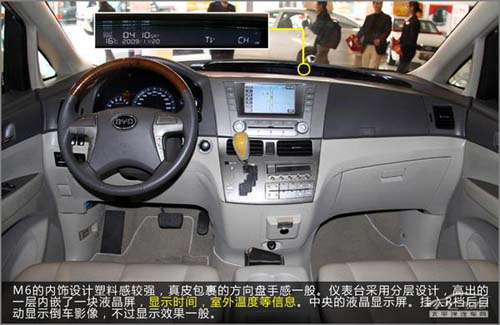 比亞迪M6擁有4808mm×1800mm×1756mm的長寬高和2950mm的軸距,其軸距比豐田普瑞維亞的2900mm軸距還要長50mm。而配置方面,配備ABS、自動天窗、倒車雷達、GPS導航系統等一應俱全,為駕乘者提供了高端享受。值得一提的是,M6全系標配一鍵啟動系統。