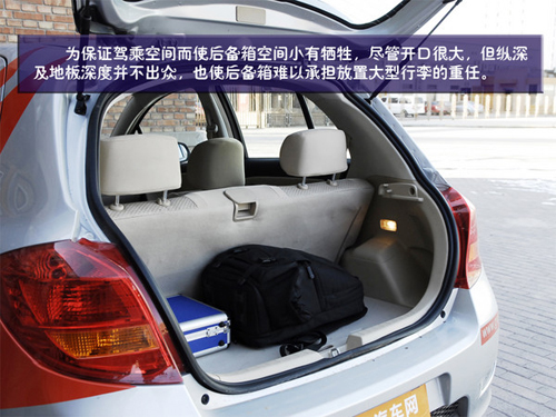 為保證足夠的駕乘空間而使得后備箱空間小有犧牲,盡管開口很大,但縱深及地板深度并不出眾,也使后備箱難以承擔(dān)放置大型行李的重任,我們的一個箱子和一個攝影包放進(jìn)去并不擁擠,但余下的空間恐怕只能再擠下一箱純凈水。當(dāng)然我們相信凌傲的車主更多的是追求駕駛的樂趣,如果您需要的是空間,或許應(yīng)該考慮的是酷熊。尾箱側(cè)面還有一個側(cè)壁照明燈,在光線不好時后備箱也可以看的一清二楚。