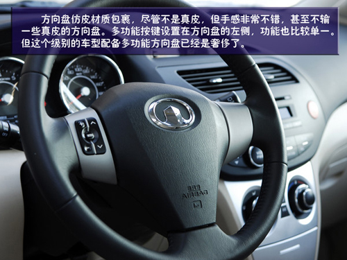 方向盤覆蓋仿皮材質,盡管不是真皮,但手感非常不錯,不夸張的說甚至不輸一些真皮的方向盤。多功能按鍵只設置在方向盤的左側,功能也比較單一。但這個級別的車型配備多功能方向盤的有幾個,這樣看來凌傲真的是夠厚道了。