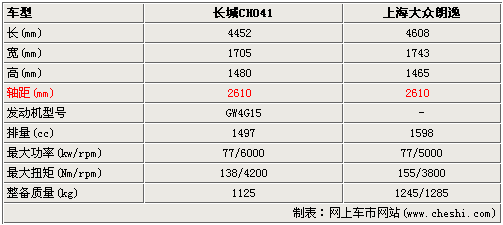 1、長城CH041與朗逸軸距相同