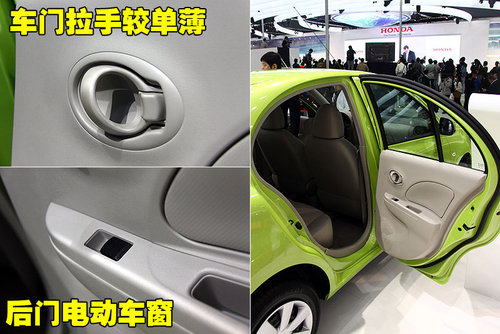 東風(fēng)日產(chǎn)瑪馳的四門車窗升降均為電動(dòng)升降,駕駛席側(cè)的車窗為一鍵式升降。中控鎖和車窗鎖定鍵也分布在這里,消費(fèi)者無需扭動(dòng)身體即可完成一系列的操作,使用起來簡(jiǎn)單方便。