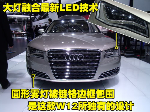 為了抗衡奔馳S級與寶馬7系這兩個最強的競爭對手,奧迪推出了全新一代旗艦車型——奧迪A8。而在國內引入則以加長版示人,這款車名為奧迪全新A8L。A8L在今年北京國際車展上首次亮相,我們對其進行詳細解析。首先觀察全新A8L的車頭部分,前大燈采用奧迪最新家族式設計,L型的前大燈比起現款車型更兇猛、更具時代氣息。融合的LED技術使車燈看起來極具科技感,像是一部概念車;圓形的霧燈也被鍍鉻邊框包圍,這也是這款W12車型的獨有設計。作為奧迪旗艦車型的A8L,外觀氣質方面一定要做到最高水準,這樣才能夠與德國雙B甚至其余同價位豪華車型相抗衡。奧迪全新設計的前大燈,很好的繼承了奧迪科技及技術方面的優勢,并將其大膽創新。