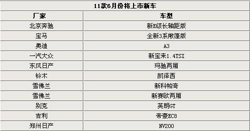 時間總是過得飛快的,似乎只有一瞬間便將到年中的6月份。而每每新的月份即將與我們相約時,我們都不會忘記將會上市的新車型。我們悉數(shù)了6月將上市的新車,發(fā)現(xiàn)熱門的新E級長軸距版、英朗GT、新寶來1.4TSI等11款比較熱門的車型將會出現(xiàn)在上市的列表中,而我們最關(guān)注的則是它們的整體情況及售價,到底會是怎么樣?我們會在本文中為您呈現(xiàn)。