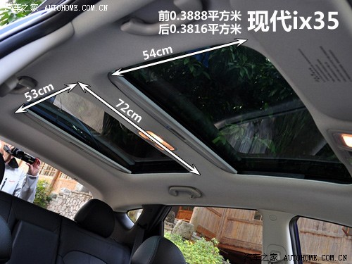 在北京現代新推出的SUV車型ix35上面,頂配車型也裝備了雙天窗,并且它的面積是今天幾個車型當中的比較大的。不僅總面積大,可以打開的面積也很大。近期在現代和起亞的車型上我們頻繁看到雙天窗的身影,比如進口起亞的索蘭托也配備雙天窗。