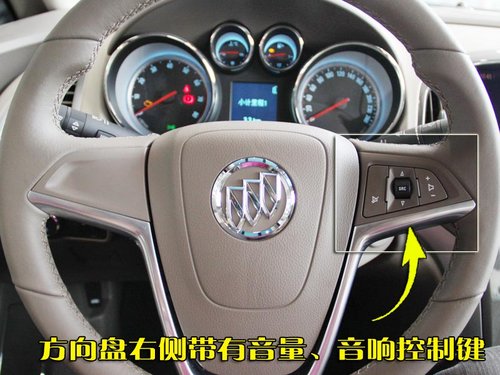 真皮縫制的方向盤在10點和14點的位置都設計了兩個凸起,這種設計更多的出現在運動車型上,是為了能夠讓駕駛者更加易于操縱方向盤。在三輻方向盤的右側是多媒體按鈕,能夠用來控制音響系統。
