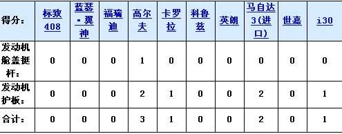 在發動機護板這方面,高爾夫6和進口馬自達兩廂有大面積的發動機護板,能夠起到一定的保護作用,i30和卡羅拉有小面積的護板,而其他6款車型則沒有任何護板。