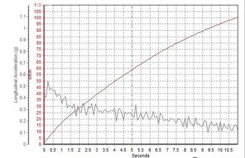 軒逸的0-100km/h加速時間為10.90秒,另外我們從加速曲線圖中也能看到,軒逸的加速力度異常平順