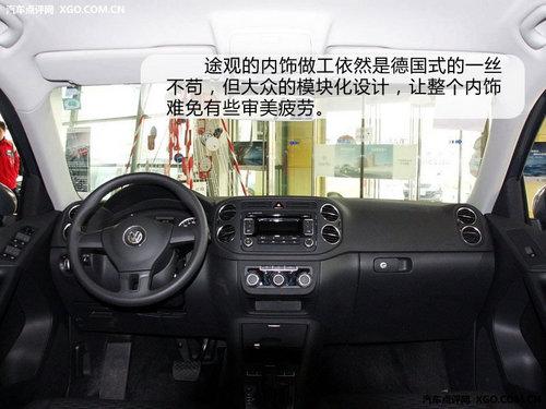 德國人的做工向來以一絲不茍著稱,國產(chǎn)途觀的內(nèi)飾自然也不例外,用料說不上十分高檔,但厚道,做工工整,接縫整齊,讓人一看就能感受到制造者的嚴(yán)謹(jǐn)。不過在設(shè)計上還是有些“偷工減料”——方向盤沿襲自高爾夫6,控制臺也總讓人覺得似曾相識。總的來說,就是設(shè)計得不夠出彩,讓人難有驚艷感。