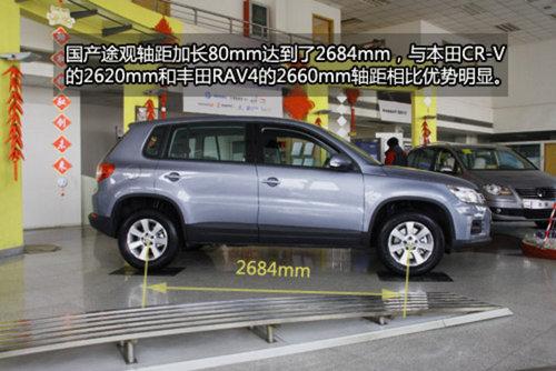 國產(chǎn)版的途觀應(yīng)用了美版新款車型的前臉造型,也就是現(xiàn)在的大眾家族臉譜——復(fù)古式水平中網(wǎng)設(shè)計。除了前臉與進(jìn)口國內(nèi)的Tiguan不同外,為了適應(yīng)國內(nèi)消費者的使用習(xí)慣,國產(chǎn)途觀還進(jìn)行了相應(yīng)的拉長,軸距達(dá)到了2684mm,相比海外版長了80mm。