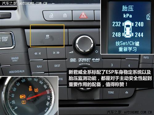 新君威全系標配了直接式胎壓監測,與眾不同的是它可以實時顯示每條輪胎具體的胎壓數值,相當直觀,駕駛員可以清楚的了解胎壓,將爆胎事故發生的概率降到最低,給這個配置打個高分。