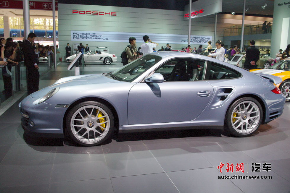 在人流如織的海外汽車巨頭的展館里,天價豪車成了當仁不讓的最搶眼明星,相形之下即使再靚麗的車模也黯然失色。圖為保時捷911 Turbo S