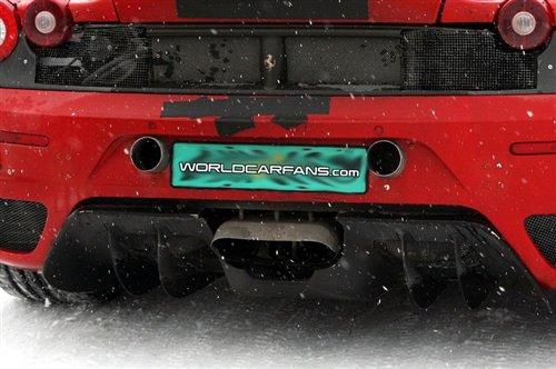目前這款新車基本已經去掉了黑色的偽裝,正在進行雪地測試,但是從尾部我們可以發現,F450可能只是披著F430的外衣,實際車型在尾部會有一定的變化。