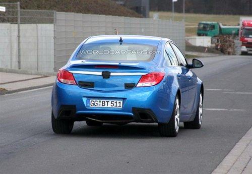 近日,一輛藍色的歐寶Insignia測試車曝光,從前保險杠上厚厚的偽裝和尾部排氣管菱形造型上可以看出,該車就是即將發布的高性能Insignia OPC車。