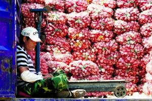 7月20日,北京新發(fā)地市場,大蒜商戶在等候買家。 卓恩森 攝