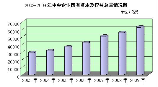 一、國有資產(chǎn)保值增值情況。2009年末,129家中央企業(yè)擁有國有資本及權(quán)益為62930.9億元,比2009年初增加6987.4億元,增幅為12.5%;比2003年增加3.4萬億元,年均遞增13.7%。在本年國有資本及權(quán)益凈增加額中,因國家追加投資、資本溢價、無償劃入等客觀因素增加3508.8億元,因無償劃出、自然災(zāi)害損失、上繳國有資本經(jīng)營收益等客觀因素減少1743.9億元。扣除各項客觀增減因素后,2009年中央企業(yè)平均國有資產(chǎn)保值增值率為109.3%。在全部中央企業(yè)中,2009年實現(xiàn)國有資產(chǎn)保值增值的企業(yè)有119家,占92.2%;國有資產(chǎn)保值增值率超過110%的企業(yè)有67家,占51.9%。