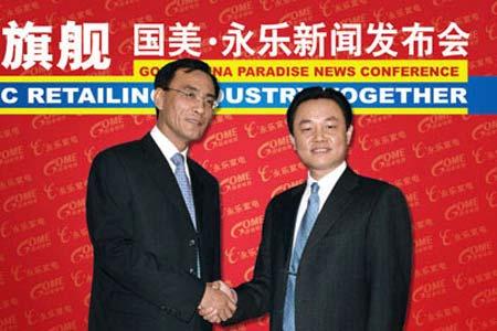 2006年11月1日,國美電器宣布以52.68億港元“股票+現(xiàn)金”的方式并購永樂。目前看來,這也是家電史上最大的一宗連鎖企業(yè)并購案。永樂電器的董事長陳曉干脆就成為他的前對手的CEO
