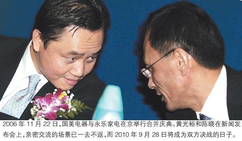 2006年,國美收購永樂,作為永樂的創(chuàng)立者,陳曉入駐國美成了職業(yè)經(jīng)理人;而幾年后,陳曉領(lǐng)銜的國美與黃光裕上演國美電器爭奪戰(zhàn)。這場戰(zhàn)爭最終以陳曉的慘敗而告終。